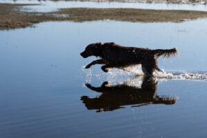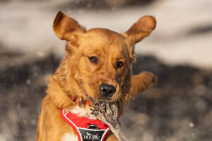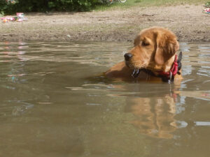 Jette wurde am 24.03.2021 in der Nähe von Wilhemshaven geboren. Sie ist eine Golden Retrieverdame aus einer Arbeitslinie, was das dunkle Fell erklärt.